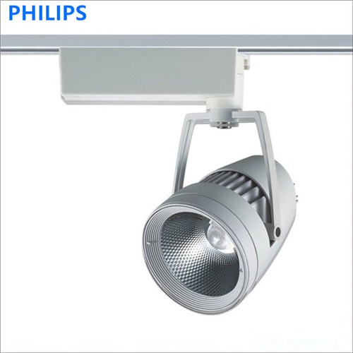 包括:灯体,所述灯体包括紧凑连为一体的发光部、散热器以及驱动器,所述发光部和所述驱动器分别连接在所述散热器的两端;可转动的连接在所述灯体上用以控制所述灯体转动角度的支架;以及紧固在所述支架上并可与照明轨道相连接的用以为所述灯体提供工作电压的轨道接头,其中:所述散热器包括:散热本体和一体成型在所述散热本体侧体上的多片叶片,所述驱动器包括电热盒和固定在所述电热盒中的LED驱动电源以及封闭设在所述电热盒一端的筒盖。